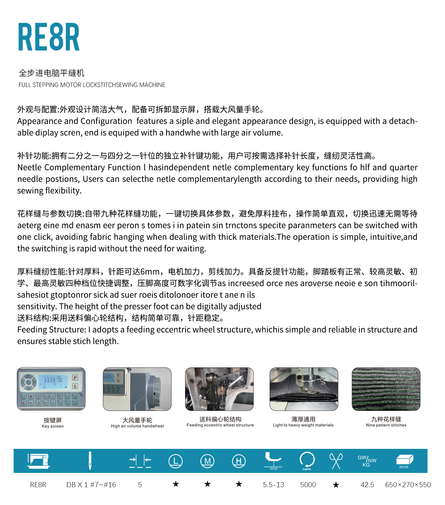 RE8R FULL STEPPING MOTOR LOCKSTITCHSEWING MACHINE 全步进电脑平缝机